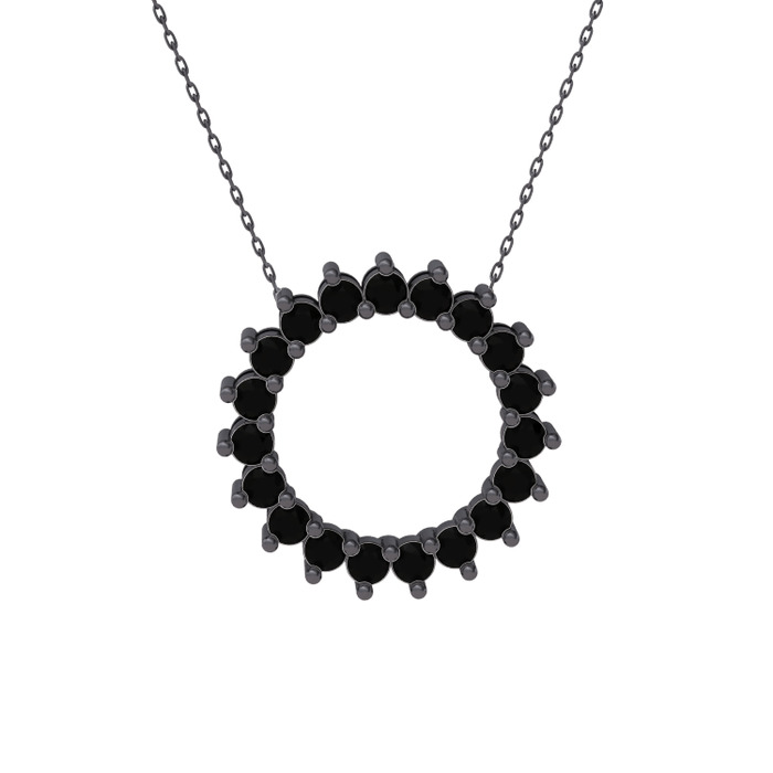 Siyah zirkon 925 ayar siyah rodyum kaplama gümüş kolye (40 cm gümüş rolo zincir)