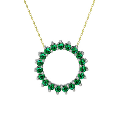 Yeşil kuvars 8 ayar beyaz altın kolye (40 cm gümüş rolo zincir)