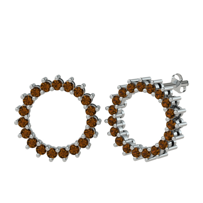 Dumanlı kuvars 18 ayar beyaz altın küpe