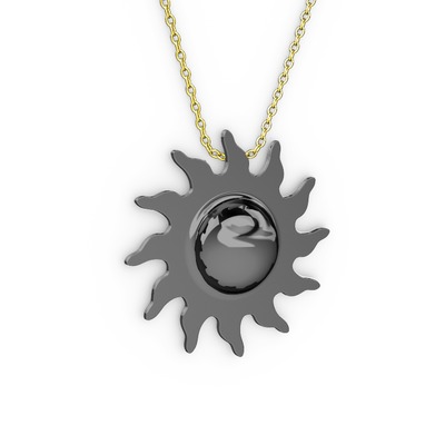 925 ayar siyah rodyum kaplama gümüş kolye (40 cm altın rolo zincir)