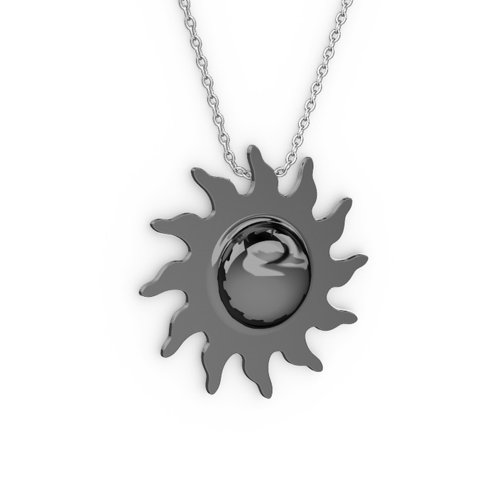 925 ayar siyah rodyum kaplama gümüş kolye (40 cm beyaz altın rolo zincir)