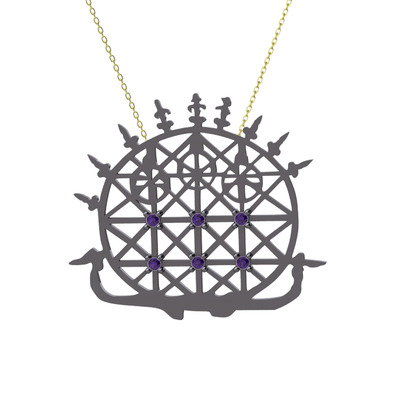 Ametist 925 ayar siyah rodyum kaplama gümüş kolye (40 cm altın rolo zincir)