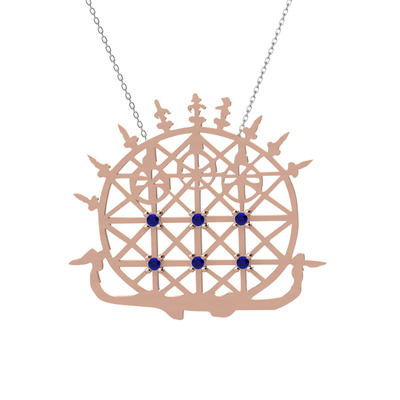Lab safir 14 ayar rose altın kolye (40 cm gümüş rolo zincir)
