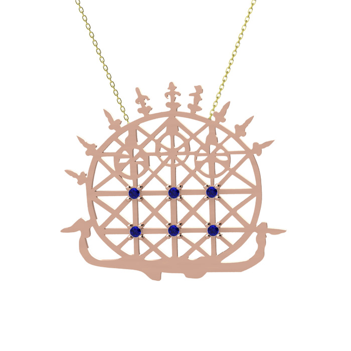 Lab safir 18 ayar rose altın kolye (40 cm altın rolo zincir)