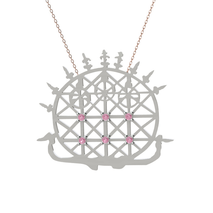 Pembe kuvars 18 ayar beyaz altın kolye (40 cm gümüş rolo zincir)