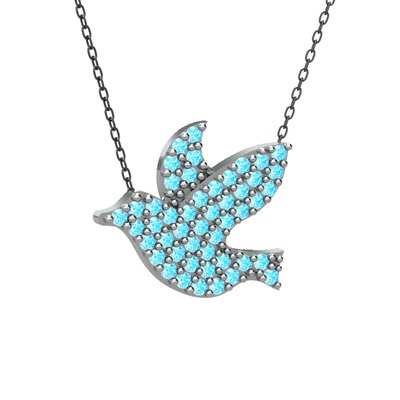 Akuamarin 925 ayar gümüş kolye (40 cm gümüş rolo zincir)