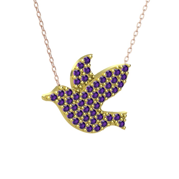 Ametist 14 ayar altın kolye (40 cm gümüş rolo zincir)