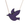 Güvercin Kolye - Ametist 925 ayar siyah rodyum kaplama gümüş kolye (40 cm rose altın rolo zincir)