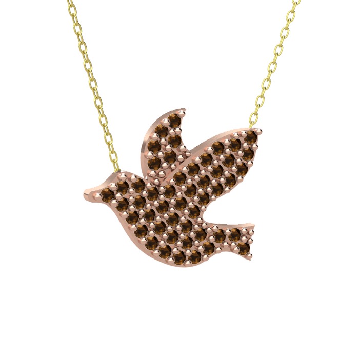 Dumanlı kuvars 14 ayar rose altın kolye (40 cm gümüş rolo zincir)