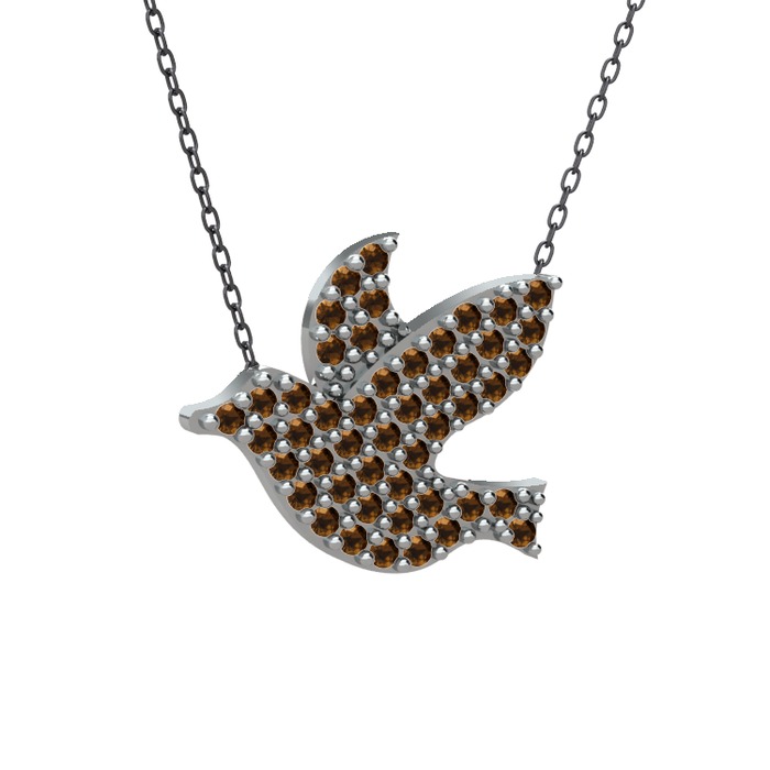 Dumanlı kuvars 18 ayar beyaz altın kolye (40 cm gümüş rolo zincir)