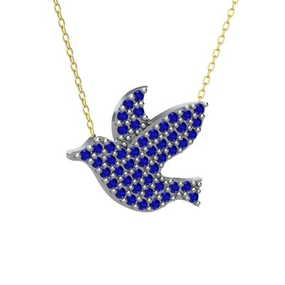 Lab safir 925 ayar gümüş kolye (40 cm altın rolo zincir)