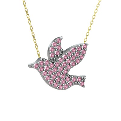 Pembe kuvars 14 ayar beyaz altın kolye (40 cm altın rolo zincir)