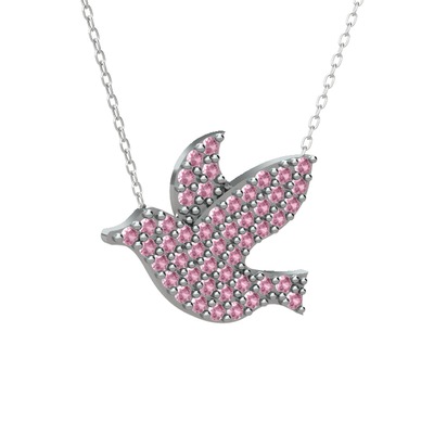 Pembe kuvars 18 ayar beyaz altın kolye (40 cm beyaz altın rolo zincir)