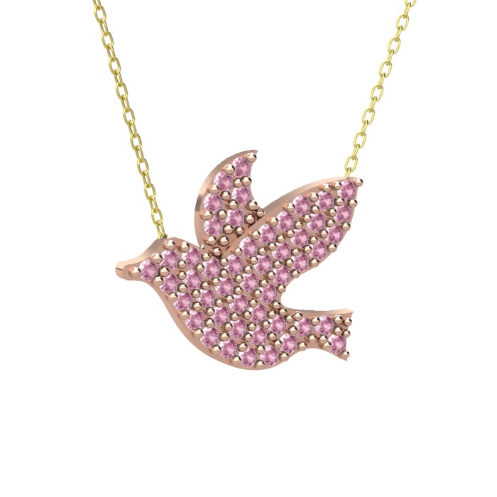 Pembe kuvars 8 ayar rose altın kolye (40 cm gümüş rolo zincir)