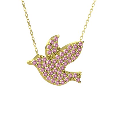 Pembe kuvars 925 ayar altın kaplama gümüş kolye (40 cm altın rolo zincir)