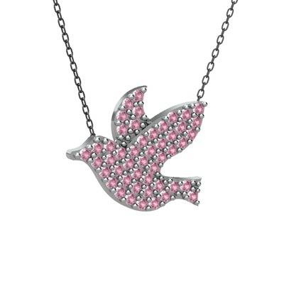 Pembe kuvars 925 ayar gümüş kolye (40 cm gümüş rolo zincir)