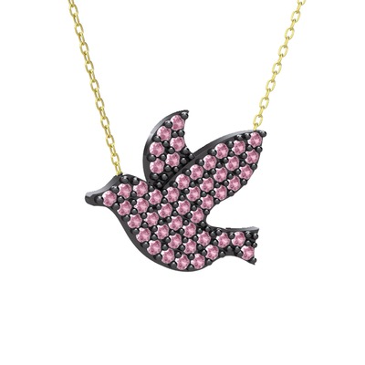 Pembe kuvars 925 ayar siyah rodyum kaplama gümüş kolye (40 cm altın rolo zincir)