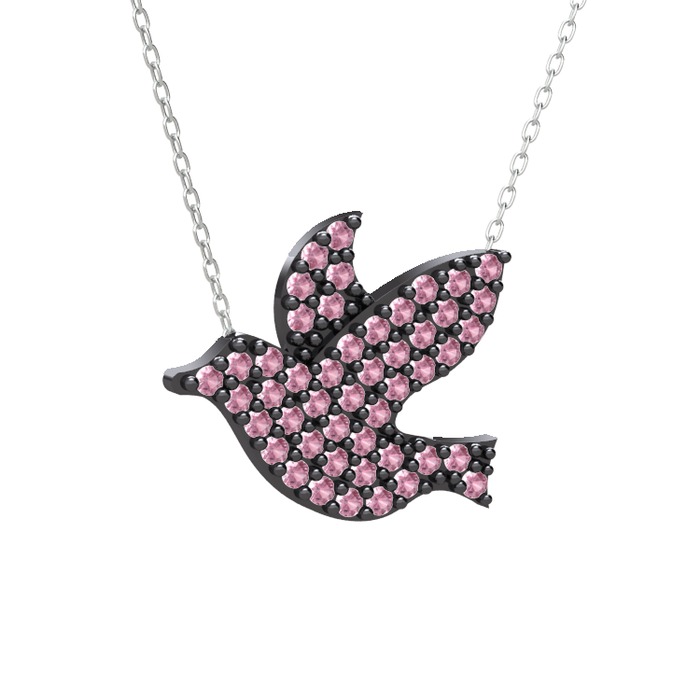 Pembe kuvars 925 ayar siyah rodyum kaplama gümüş kolye (40 cm beyaz altın rolo zincir)