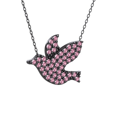 Pembe kuvars 925 ayar siyah rodyum kaplama gümüş kolye (40 cm gümüş rolo zincir)