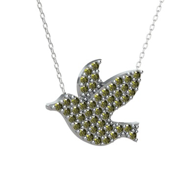 Peridot 14 ayar beyaz altın kolye (40 cm gümüş rolo zincir)