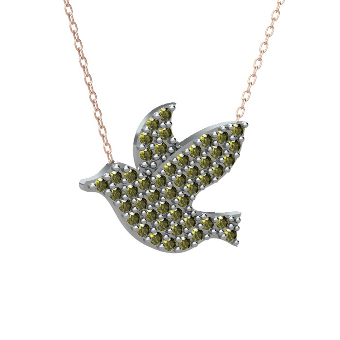 Peridot 8 ayar beyaz altın kolye (40 cm rose altın rolo zincir)