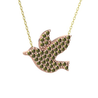 Peridot 925 ayar rose altın kaplama gümüş kolye (40 cm altın rolo zincir)