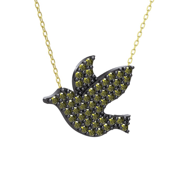 Peridot 925 ayar siyah rodyum kaplama gümüş kolye (40 cm altın rolo zincir)