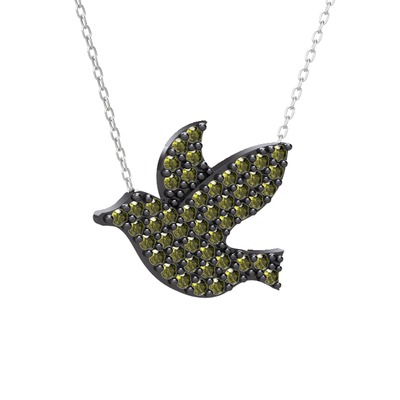 Peridot 925 ayar siyah rodyum kaplama gümüş kolye (40 cm beyaz altın rolo zincir)