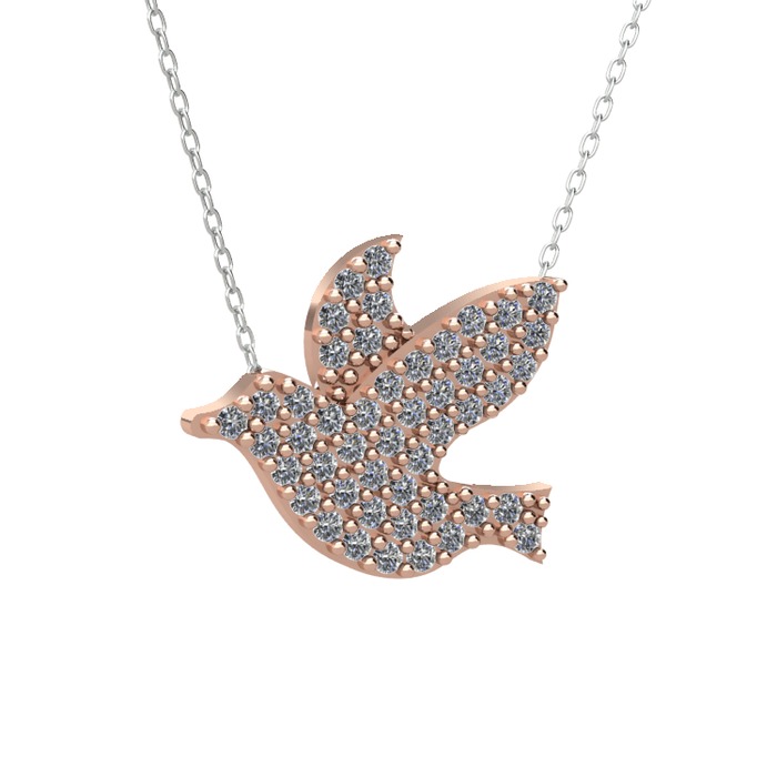 Pırlanta 925 ayar rose altın kaplama gümüş kolye (0.4224 karat, 40 cm gümüş rolo zincir)