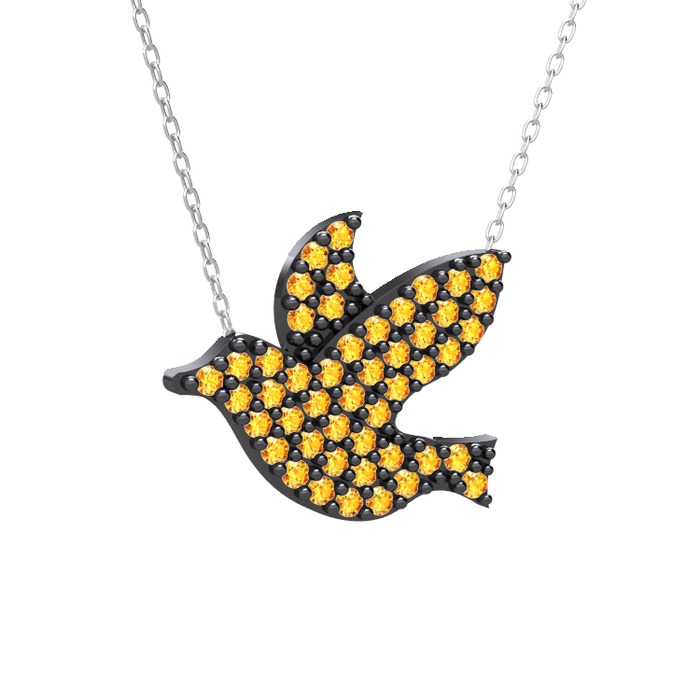 Sitrin 925 ayar siyah rodyum kaplama gümüş kolye (40 cm beyaz altın rolo zincir)