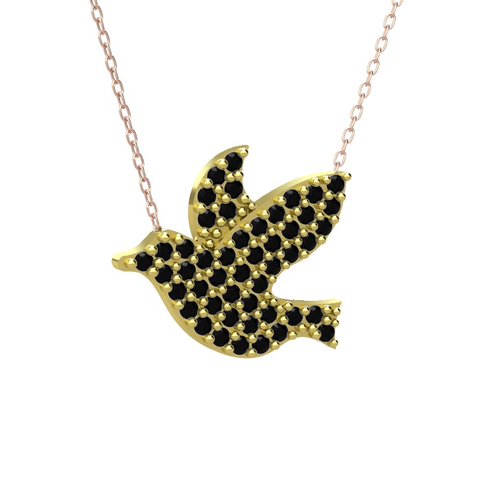 Siyah zirkon 14 ayar altın kolye (40 cm rose altın rolo zincir)