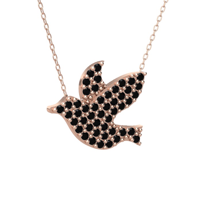 Siyah zirkon 14 ayar rose altın kolye (40 cm gümüş rolo zincir)