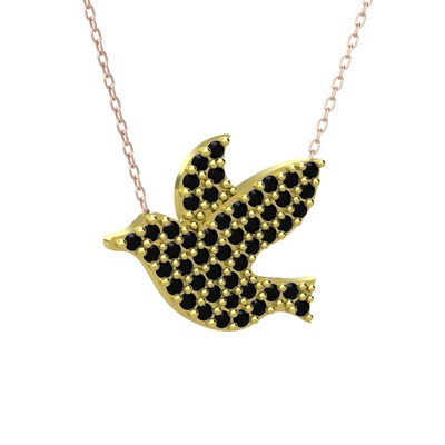 Siyah zirkon 18 ayar altın kolye (40 cm rose altın rolo zincir)
