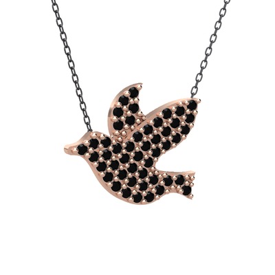 Siyah zirkon 8 ayar rose altın kolye (40 cm gümüş rolo zincir)