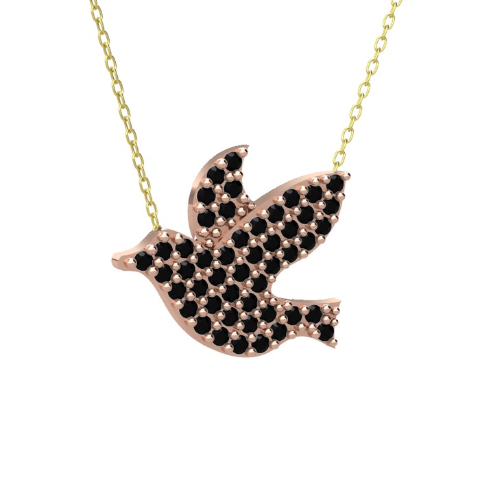 Siyah zirkon 925 ayar rose altın kaplama gümüş kolye (40 cm altın rolo zincir)