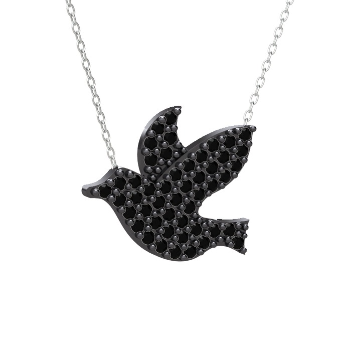 Siyah zirkon 925 ayar siyah rodyum kaplama gümüş kolye (40 cm gümüş rolo zincir)