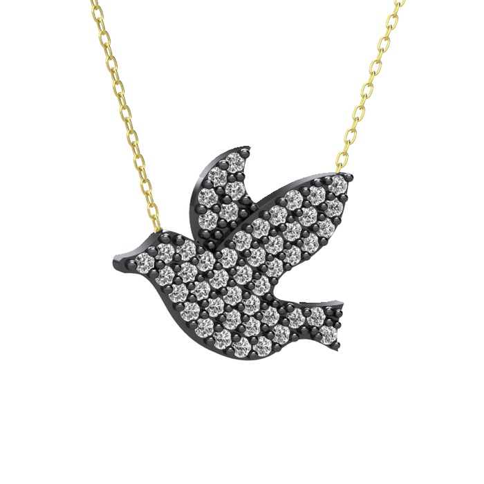 Swarovski 925 ayar siyah rodyum kaplama gümüş kolye (40 cm altın rolo zincir)