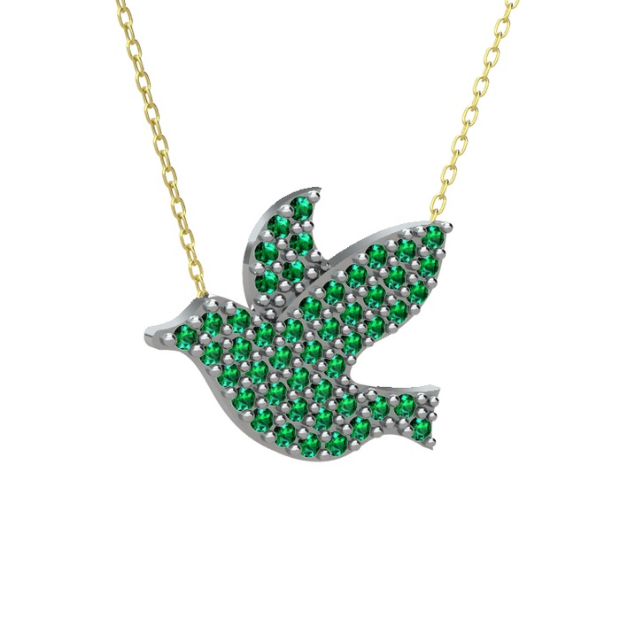 Yeşil kuvars 18 ayar beyaz altın kolye (40 cm altın rolo zincir)