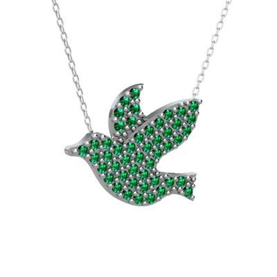 Yeşil kuvars 18 ayar beyaz altın kolye (40 cm gümüş rolo zincir)
