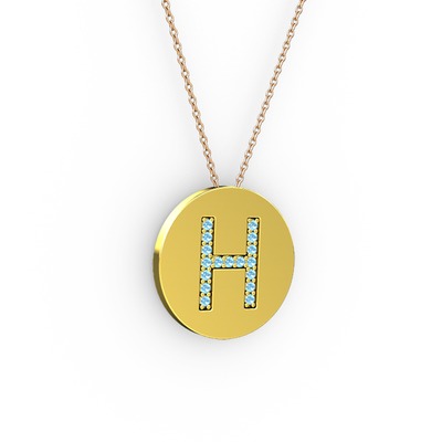 Akuamarin 14 ayar altın kolye (40 cm rose altın rolo zincir)