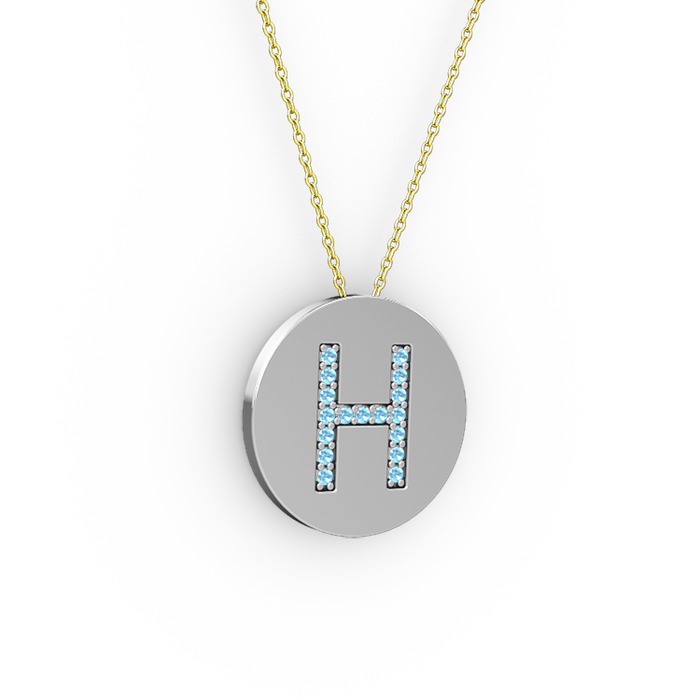 Akuamarin 14 ayar beyaz altın kolye (40 cm gümüş rolo zincir)