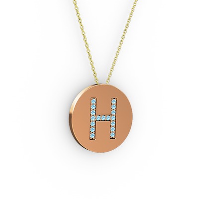 Akuamarin 8 ayar rose altın kolye (40 cm altın rolo zincir)