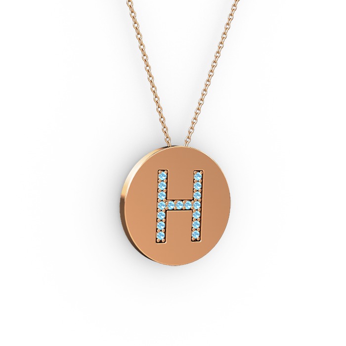 Akuamarin 8 ayar rose altın kolye (40 cm rose altın rolo zincir)
