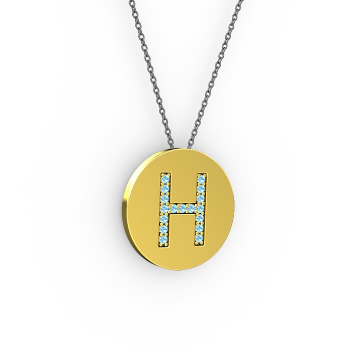 Akuamarin 925 ayar altın kaplama gümüş kolye (40 cm gümüş rolo zincir)