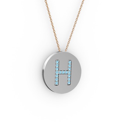 Akuamarin 925 ayar gümüş kolye (40 cm rose altın rolo zincir)