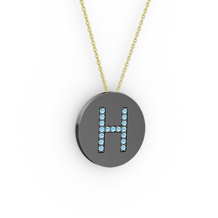 Akuamarin 925 ayar siyah rodyum kaplama gümüş kolye (40 cm altın rolo zincir)