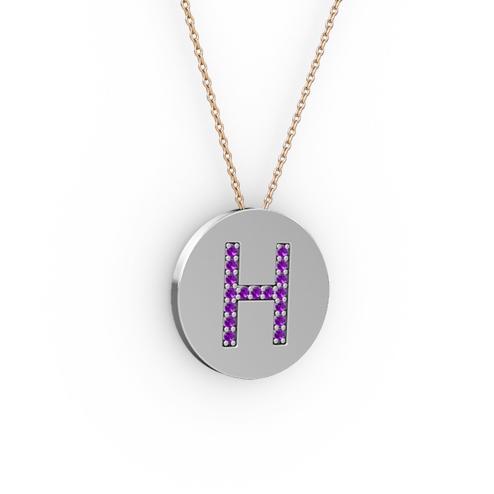 Ametist 14 ayar beyaz altın kolye (40 cm rose altın rolo zincir)