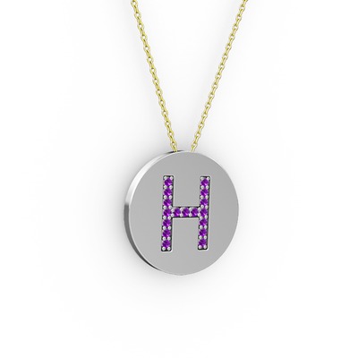 Ametist 8 ayar beyaz altın kolye (40 cm altın rolo zincir)