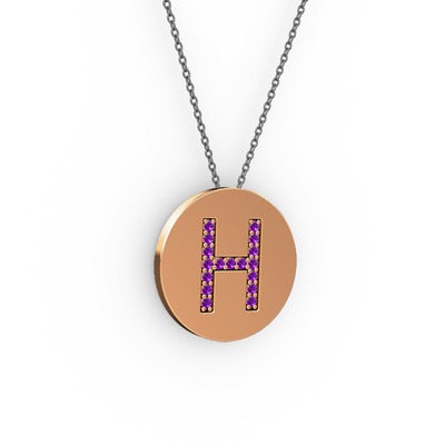 H Baş Harf Kolye - Ametist 8 ayar rose altın kolye (40 cm gümüş rolo zincir)