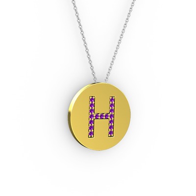 Ametist 925 ayar altın kaplama gümüş kolye (40 cm beyaz altın rolo zincir)